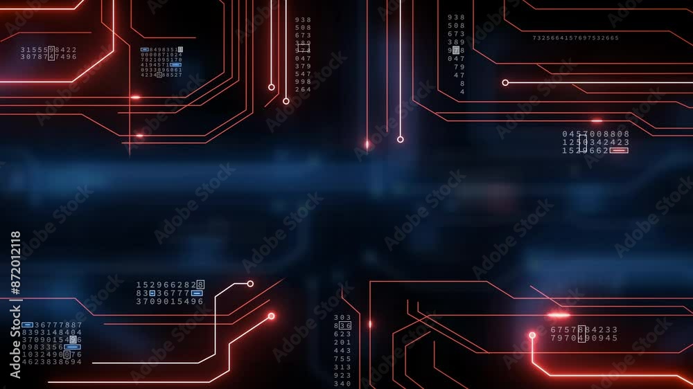 Wall mural digital cyberspace circuit board with binary code particles network - Wall murals Wall mural digital cyberspace circuit board with binary code particles network - Wall murals