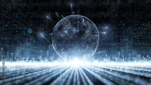 Wall mural : Digital cyberspace with 3d sphere and waves copy space animation -