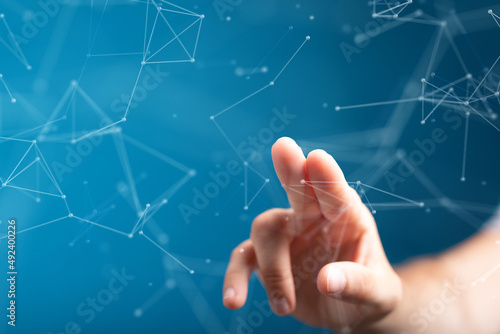The watermark will not be included on Wall mural.: Digital cyberspace with particles and digital data network connections concept