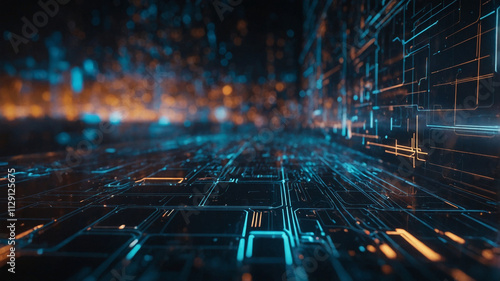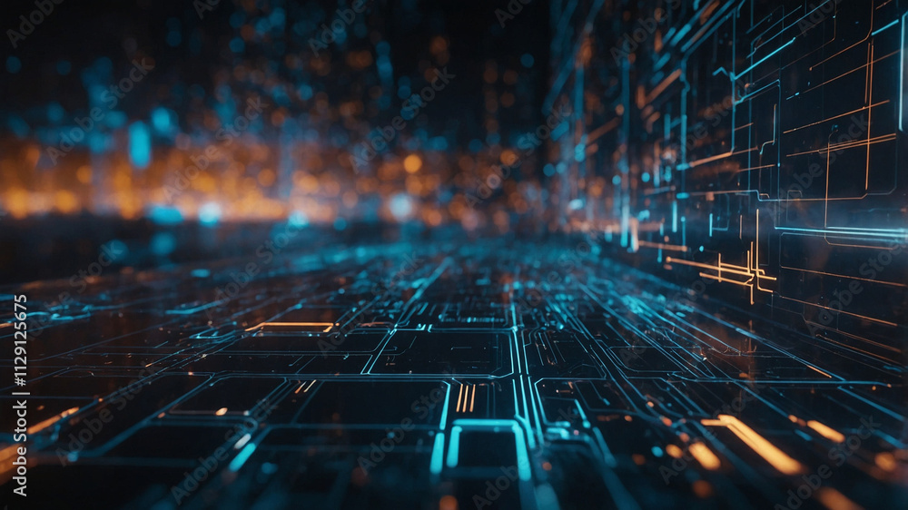 Wall mural : Digital cyberspace with particles and digital data network connections concept