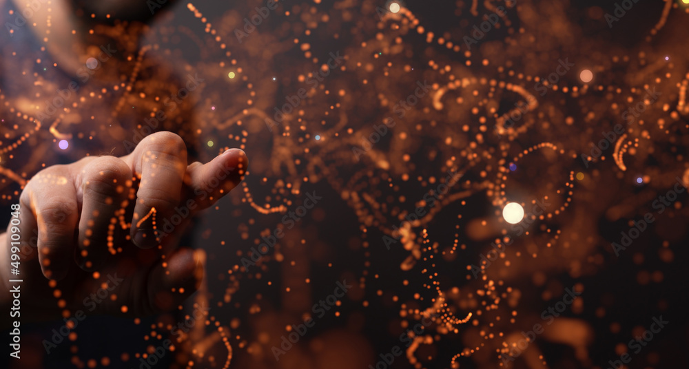 Wall mural digital cyberspace with particles and digital data network connections concept