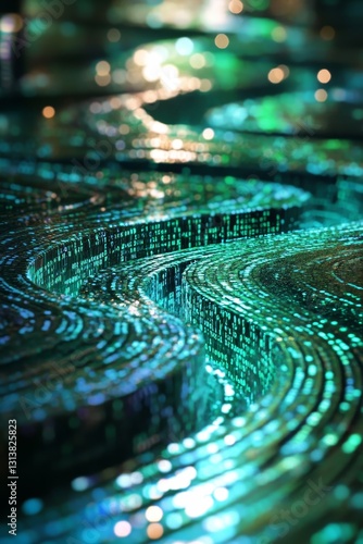 The watermark will not be included on Wall mural.: Digital data flow in abstract pattern with green and blue colors
