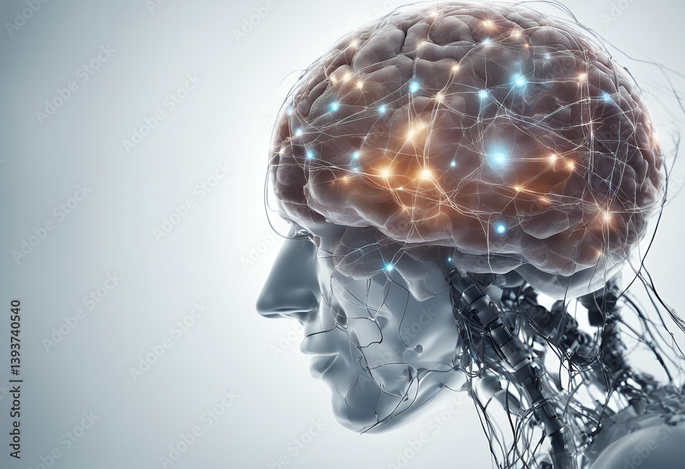 Wall mural digital data network connection human brain white background form artificial intelligence technology