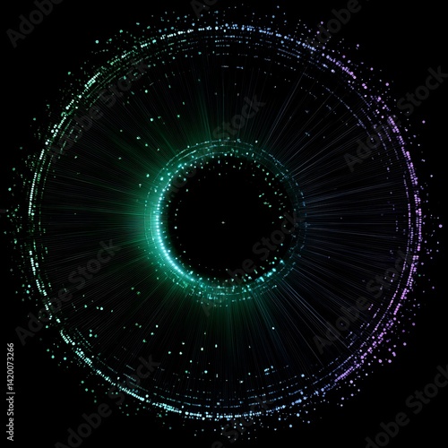 The watermark will not be included on Wall mural.: Digital data orbit with radiating lines in cyberspace represents connectivity and futuristic design -