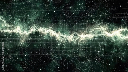 Wall mural digital data pattern, abstract network wave in cyber space, ai tech dark background. concept of tech
