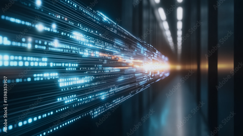 Wall mural digital data stream: a dynamic, futuristic visualization of digital data streaming through a virtual