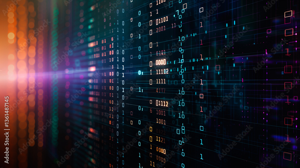 Wall mural digital data stream: dive into a captivating visual of a data stream, a mesmerizing display of binar - Wall murals Wall mural digital data stream: dive into a captivating visual of a data stream, a mesmerizing display of binar - Wall murals