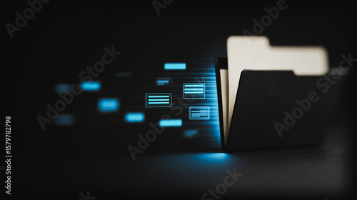 Wall mural : Digital data transfer: a futuristic image of a folder, symbolizing data flow, conveying a seamless a