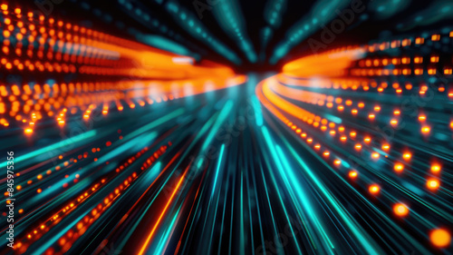 Wall mural : Digital data tunnel, abstract fast lines of information for background, illustration of tech light p