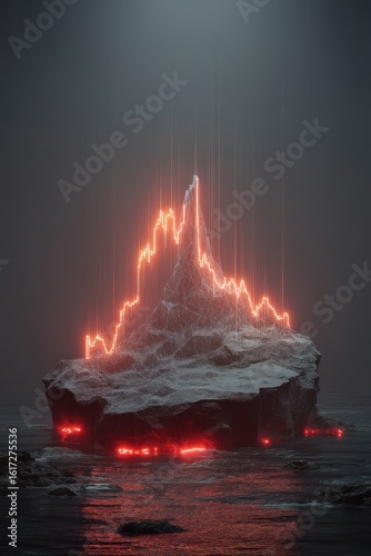 The watermark will not be included on Wall mural.: Digital data visualization on a glowing polygonal cliff island in dark waters