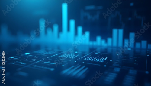 Wall mural : Digital data visualization with blue tones, featuring graphs and charts that represent statistical i