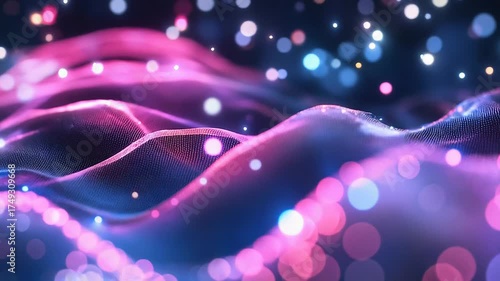 The watermark will not be included on Wall mural.: Digital data waves flowing particles network background
