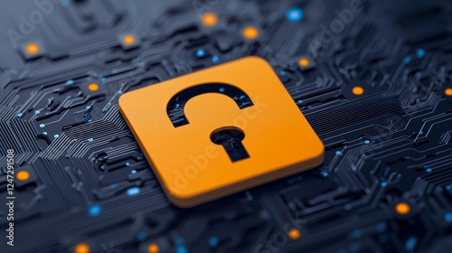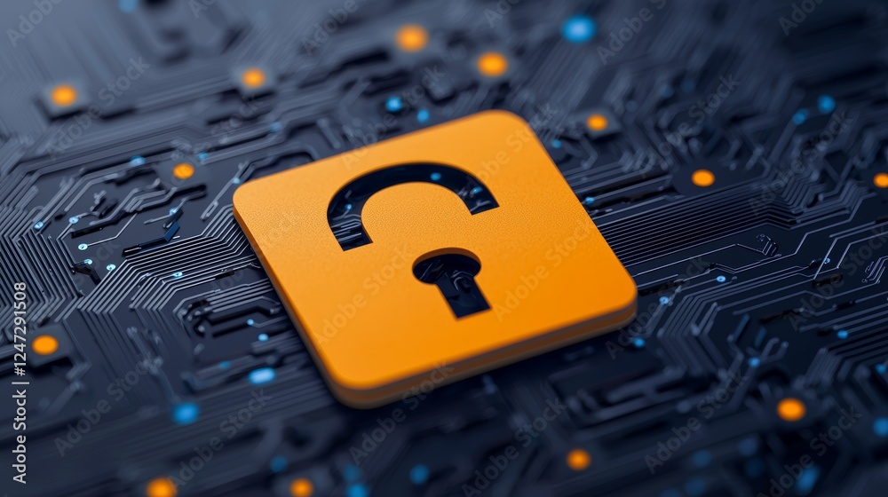 The watermark will not be included on Wall mural.: Digital design of interconnected networks with unlocked padlock symbol on circuit background