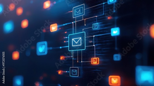 Wall mural digital document icons floating in a cloud network - Wall murals Wall mural digital document icons floating in a cloud network - Wall murals