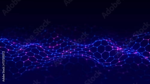 Wall mural digital dynamic cyber wave. abstract futuristic hexagon background with dots and lines. big data vis