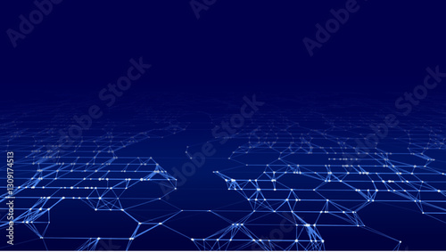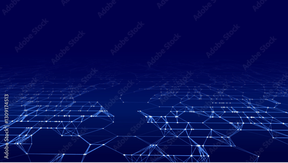 Wall mural : Digital dynamic wave of particles and lines - abstract blue futuristic background - big data visualiza