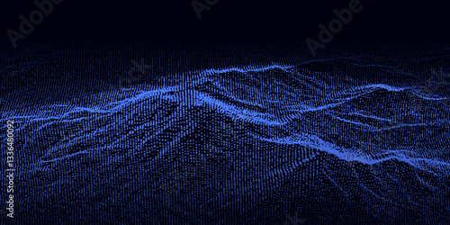 Digital dynamic wave of particles and lines - abstract blue futuristic background - big data visualizaWall mural