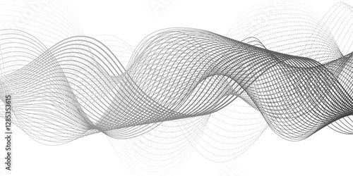 Wall mural digital dynamic wave of particles. vector abstract white futuristic lines. black and white gradient