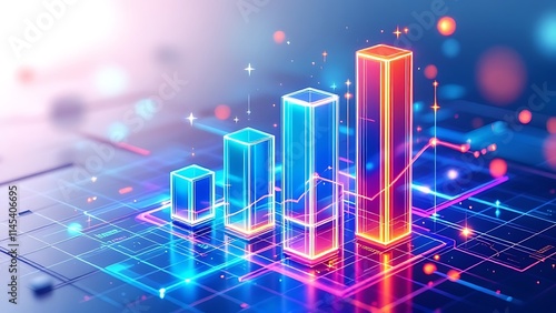 Wall mural : Digital e-commerce trends visualized with 3d bar charts, showcasing growth, analytics, and data-driv