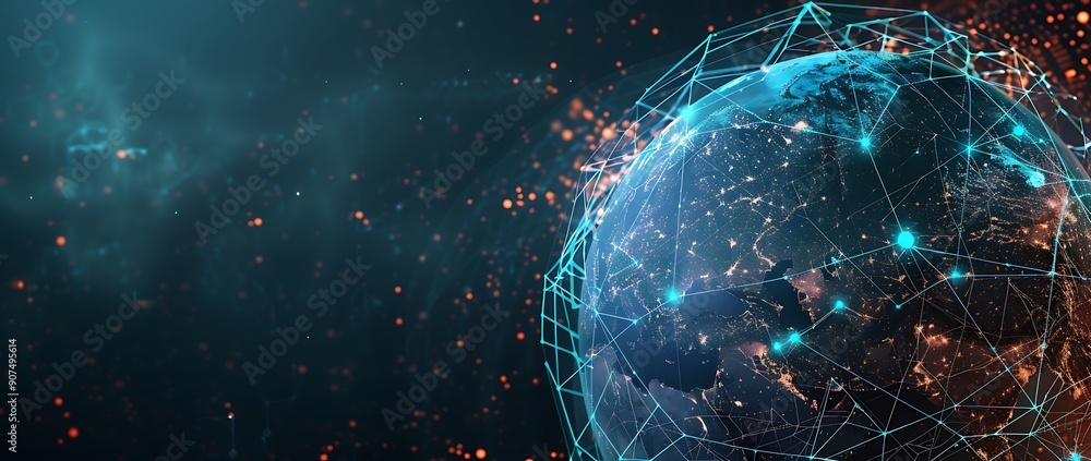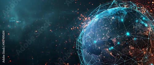 Wall mural digital earth globe with global network connections and data technology background. a digital earth