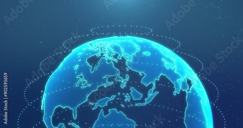 Wall mural digital earth made up of dots. global network and digital data technology concepts.