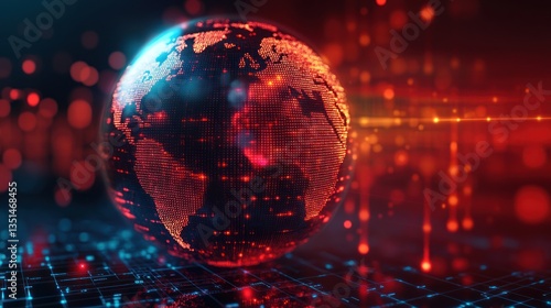 The watermark will not be included on Wall mural.: Digital earth rotating on grid with data streams in cyberspace