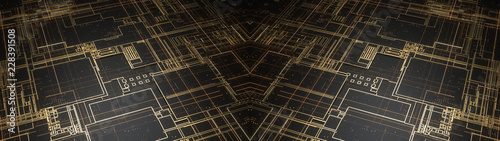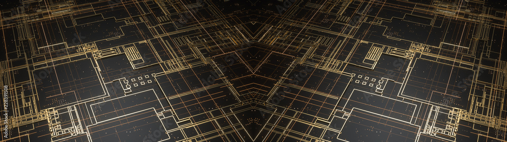 Wall mural digital electronic circuit board. abstract structure of many glowing lines and geometric elements. c