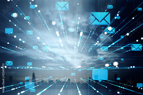 The watermark will not be included on Wall mural.: Digital email communication symbols with glowing lines on futuristic abstract background illustratin