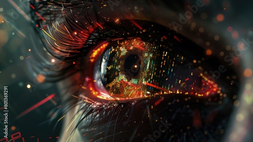 Wall mural digital eye with data and code particles flowing