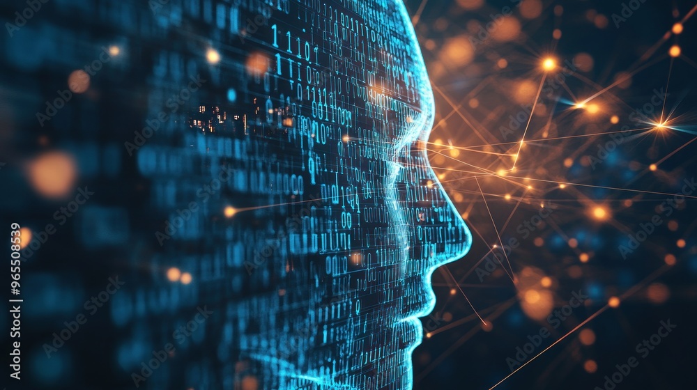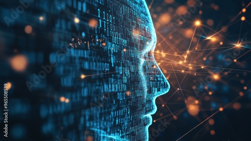 Wall mural digital face with binary code and connections - Wall murals Wall mural digital face with binary code and connections - Wall murals