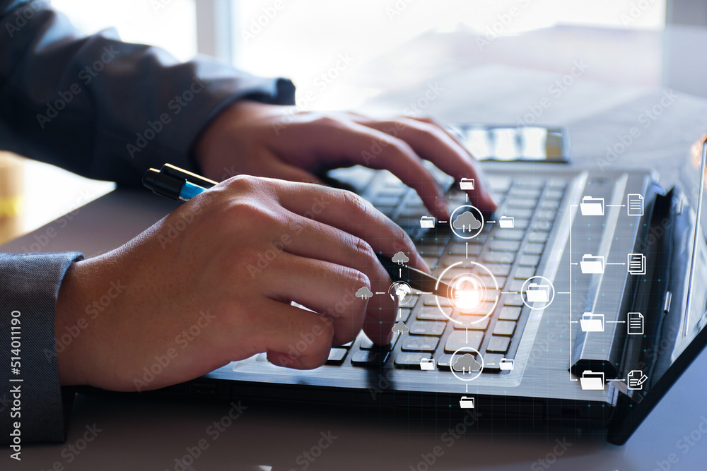 Wall mural digital file management concept. businessman are accessing big data storage on internet, digital sto - Wall murals Wall mural digital file management concept. businessman are accessing big data storage on internet, digital sto - Wall murals