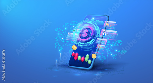 Wall mural : Digital finance all over the world using the internet mobile app - fintech management of digital big