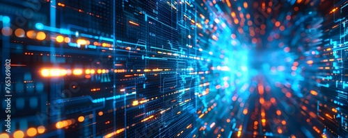 Wall mural digital futuristic technology abstract banner background illuminated by vibrant neon lights, forming
