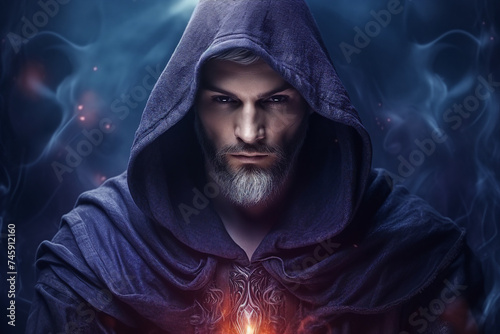 The watermark will not be included on Wall mural.: Digital generative ai collage image of wise wizard doing ritual spell