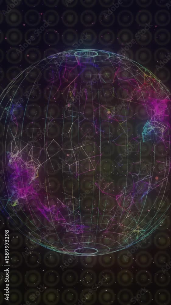 Digital globe glowing with colorful network connections over dark animation backgroundWall mural
