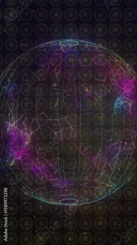 The watermark will not be included on Wall mural.: Digital globe glowing with colorful network connections over dark animation background