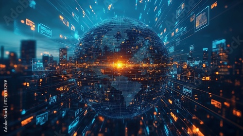 Wall mural digital globe illustration: abstract representation of global networks and media content