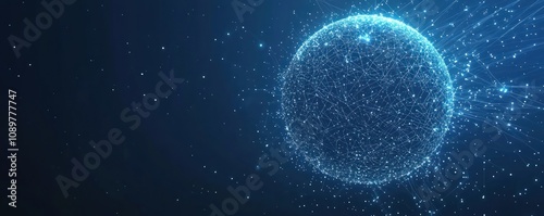 Wall mural digital globe made of glittering stars and connected lines on deep blue background