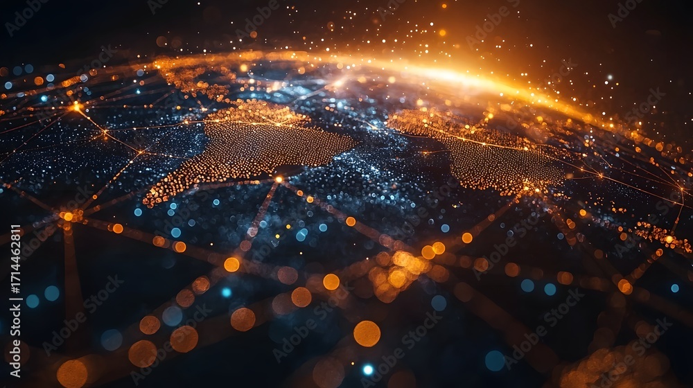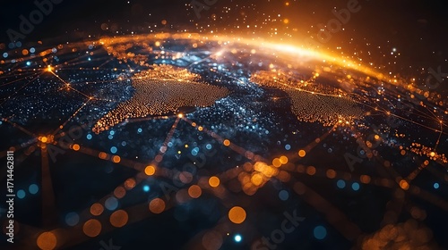 Wall mural digital globe with glowing connections and data streams representing global connectivity