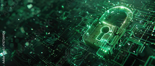Wall mural digital green hot lock in abstract cyber space, data dark background, secure computer information. t - Wall murals Wall mural digital green hot lock in abstract cyber space, data dark background, secure computer information. t - Wall murals