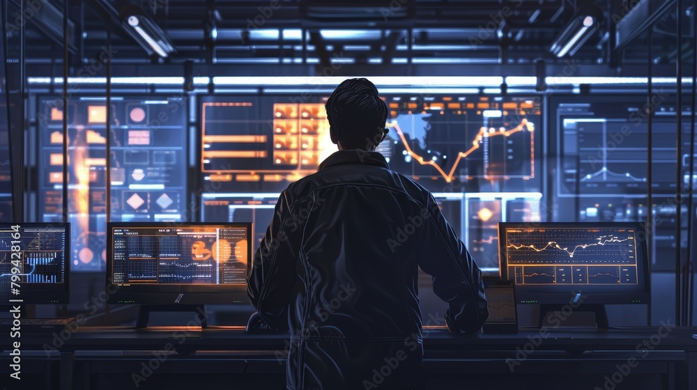 Wall mural digital guardian cybersecurity expert protecting virtual assets with advanced protocols and vigilant - Wall murals Wall mural digital guardian cybersecurity expert protecting virtual assets with advanced protocols and vigilant - Wall murals