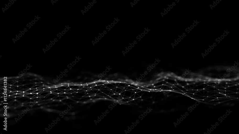 Wall mural digital hexagon dynamic wave of particles. abstract black futuristic background. big data visualizat - Wall murals Wall mural digital hexagon dynamic wave of particles. abstract black futuristic background. big data visualizat - Wall murals
