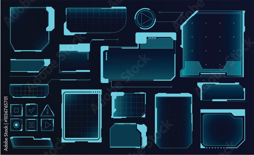 The watermark will not be included on Wall mural.: Digital hud frames - futuristic user interface digital panels and buttons, cyber tech callout bar and