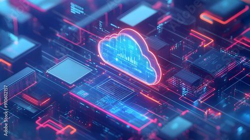 Wall mural : Digital illustration cloud computing concept data management storage process interconnection devices