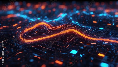Wall mural digital illustration of a glowing blockchain concept with a close-up of a chain made of binary code - Wall murals Wall mural digital illustration of a glowing blockchain concept with a close-up of a chain made of binary code - Wall murals