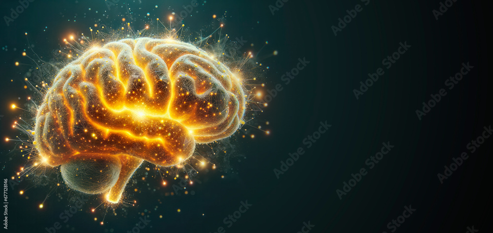 Wall mural digital illustration of a human brain in colour background with sparkle effect. generative ai - Wall murals Wall mural digital illustration of a human brain in colour background with sparkle effect. generative ai - Wall murals
