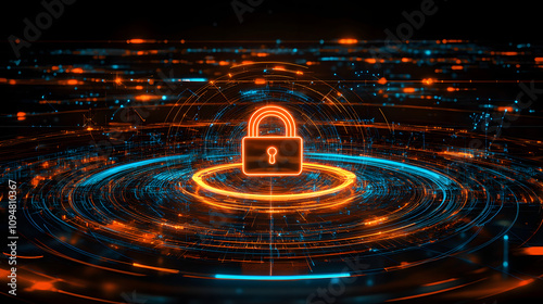 Wall mural digital illustration of cybersecurity network internet system web data centre protection padlock sym