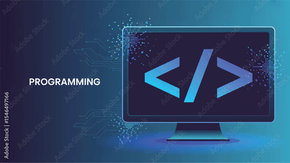 Wall mural digital illustration programming code on computer screen - Wall murals Wall mural digital illustration programming code on computer screen - Wall murals