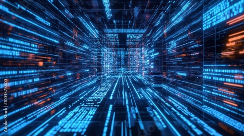 Wall mural digital illustrations in blue showcase computer codes and futuristic web designs. virtual patterns d - Wall murals Wall mural digital illustrations in blue showcase computer codes and futuristic web designs. virtual patterns d - Wall murals