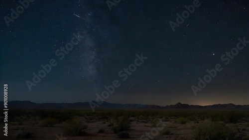 Wall mural digital image of a starry night over the desert with a meteor shower - Wall murals Wall mural digital image of a starry night over the desert with a meteor shower - Wall murals